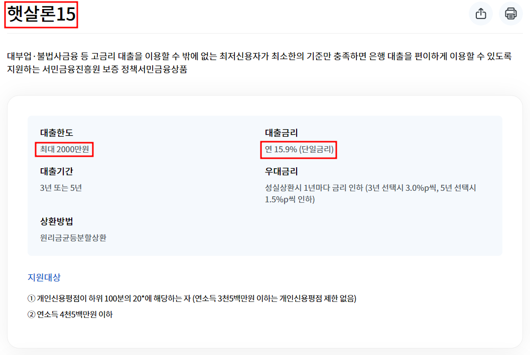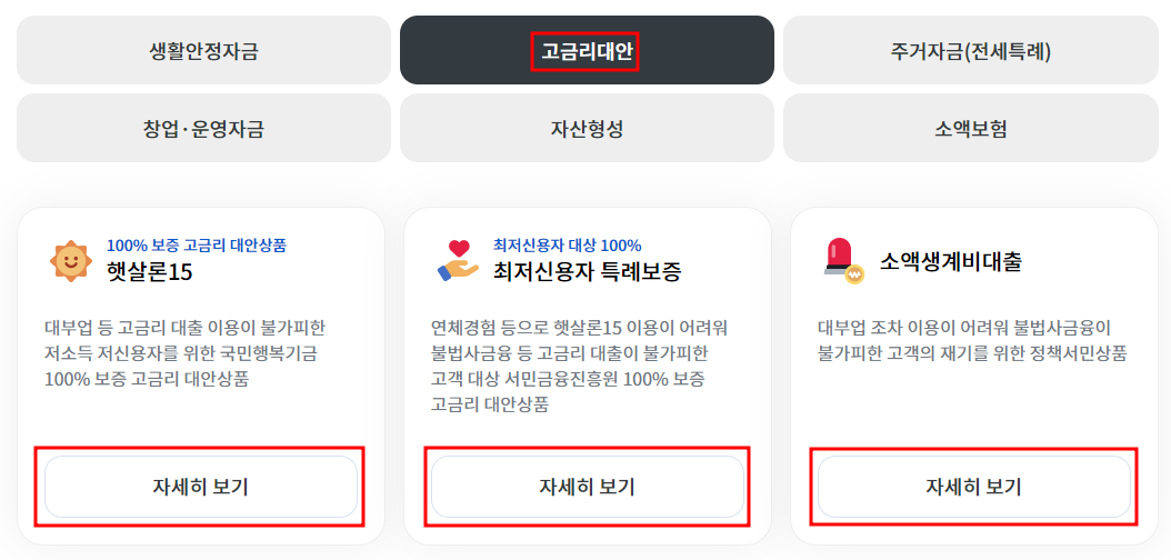 자세한 내용은 서민금융진흥원 고금리대안 페이지에서 확인하실수 있습니다.