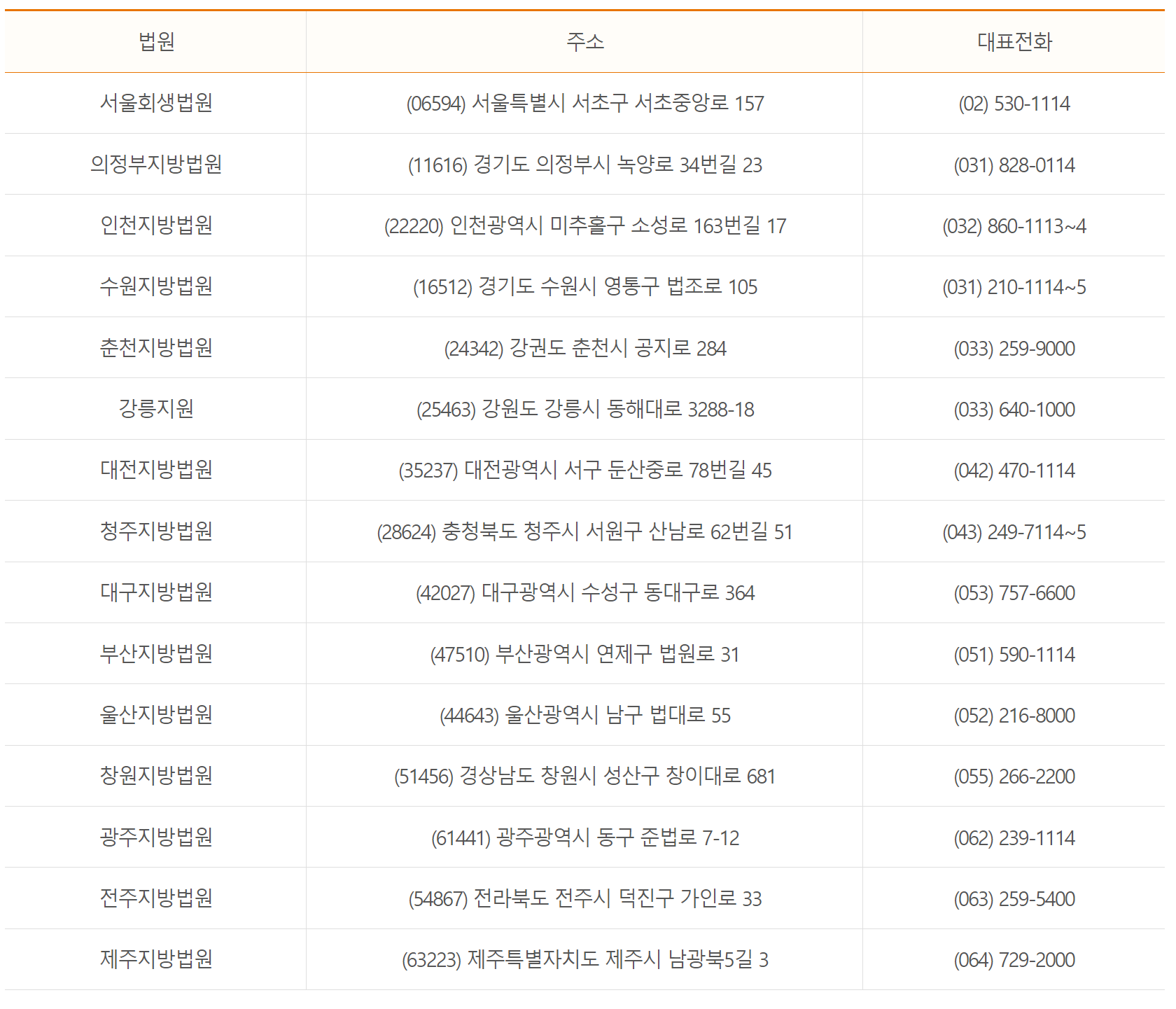 다만, 서울시에 주소가 있는 사람은 그 주소지의 관할법원이 예컨대 서울동부지방법원이나 서울남부지방법원 등 이라도 서울회생법원에 신청서를 제출하여야 합니다.