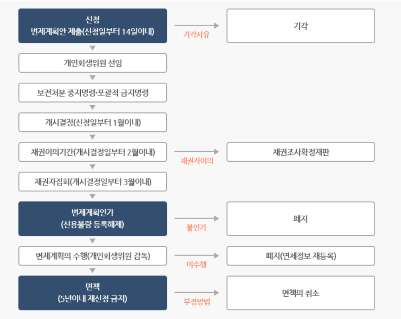 채무자는 법원이 승인한 변제 계획에 따라 일정 기간 동안 분할 상환을 완료하면 나머지 채무는 면책되어 더 이상 갚지 않아도 되는 법적 보호를 받게 됩니다.
