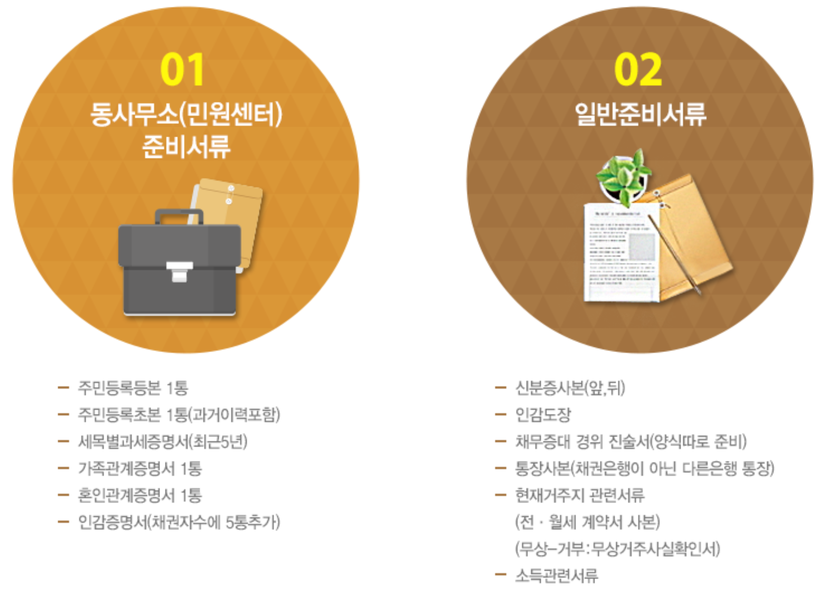 개인회생절차 신청시 필요한 서류는 아래와 같습니다.