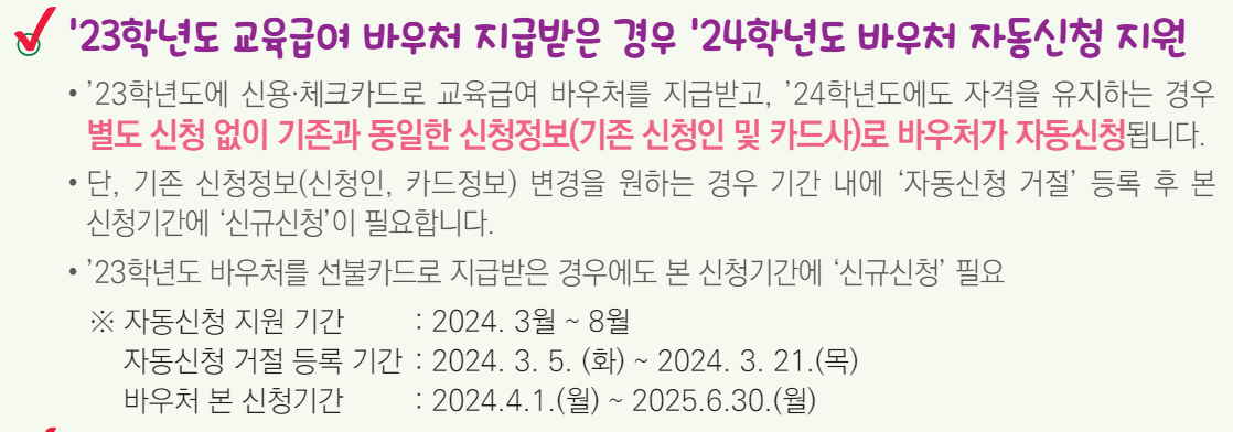 여기서 주의하실 점은 교육급여 대상자로 수급 결정 되신분들은 반드시 별도로 교육급여 바우처 홈페이지에서 바우처 신청을 하셔야 합니다.