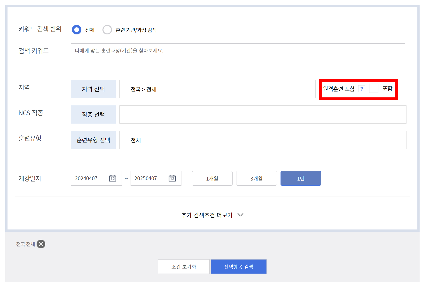 이제 카드를 받으셨다면 훈련과정에서 배우고 싶은 키워드로 검색하시고 지역을 선택하시고 온라인 과정은 원격훈련 포함으로 검색하셔서 원하는 강의를 수강하시면 됩니다.