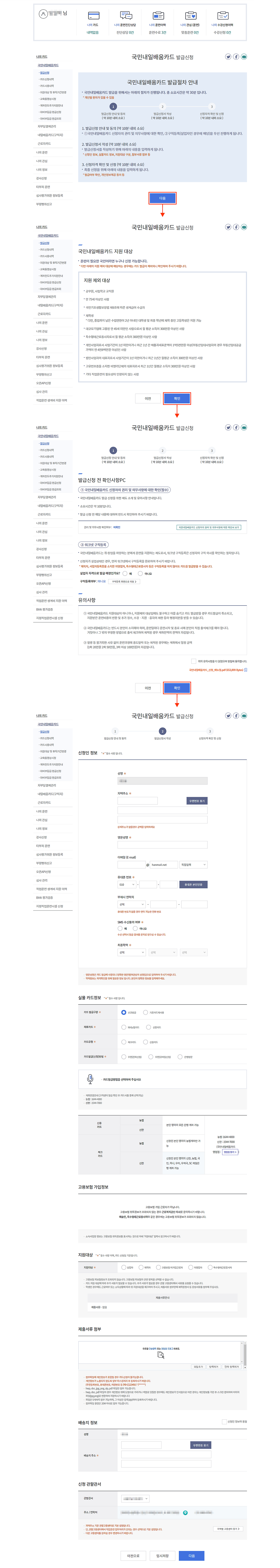 2. HRD-Net 홈페이지 로그인 후 나의 정보 페이지에서 나의카드 > 국민내일배움카드 > 발급신청으로 이동