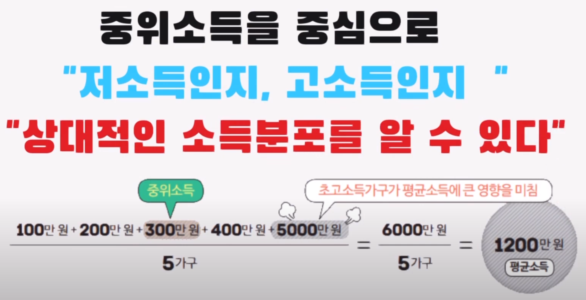 실제로 중위소득은 소득 양극화의 영향을 덜 받으면서 소득 분포의 중간값을 파악하는데 유용합니다.
