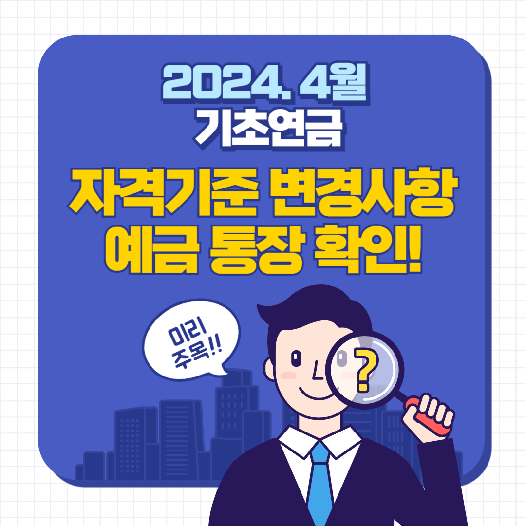 오늘은 4월에 새롭게 바뀌는 기초연금 수급 조건에 맞추어 통장 잔액 기준에 대해서 알아봤습니다. 내용 잘 숙지하셔서 기초연금 탈락하는 일 절대 없으셨으면 좋겠습니다.