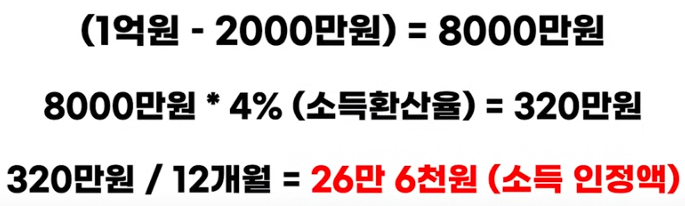 이것을 월 평균 소득인정액으로 바꾸기 위해 다시 12개월로 나눠주면 26만 6천원이 됩니다.