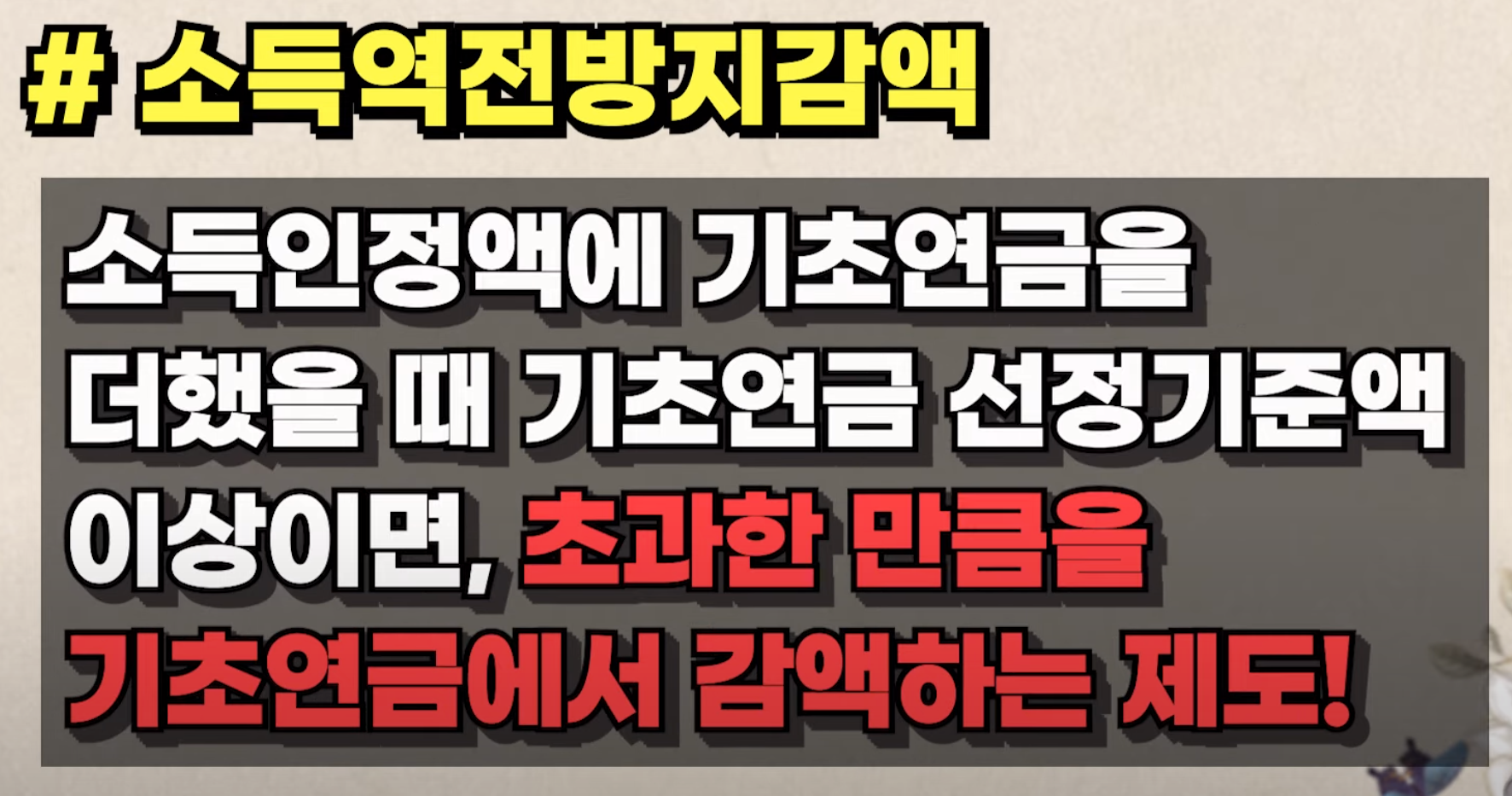 다음에는 말도 많고 탈도 많은 국민연금 수급시 기초연금 감액에 대해 알아보도록 하겠습니다.