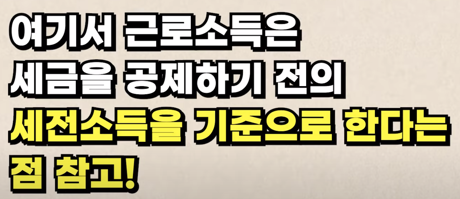 근로소득은 기본공제 110만원에서 30% 추가공제까지 되어서 기초연금 소득인정액을 계산할 때 가장 공제가 많이 되는데요. 여기서 근로소득은 세금을 공제하기 전에 세전소득을 기준으로 한다는 점 참고해 주세요.