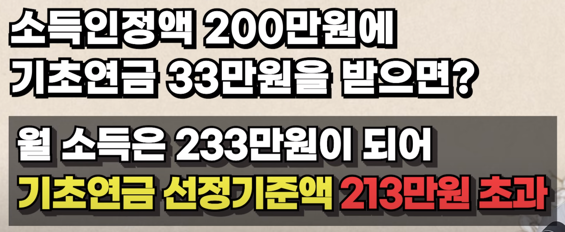 그럼 지금부터 기초연금을 감액되고 않고 전부 다 받기 위해 월급과 부동산, 현금은 각각 얼마까지 있어야 하는지 정리해 드리도록 하겠습니다.