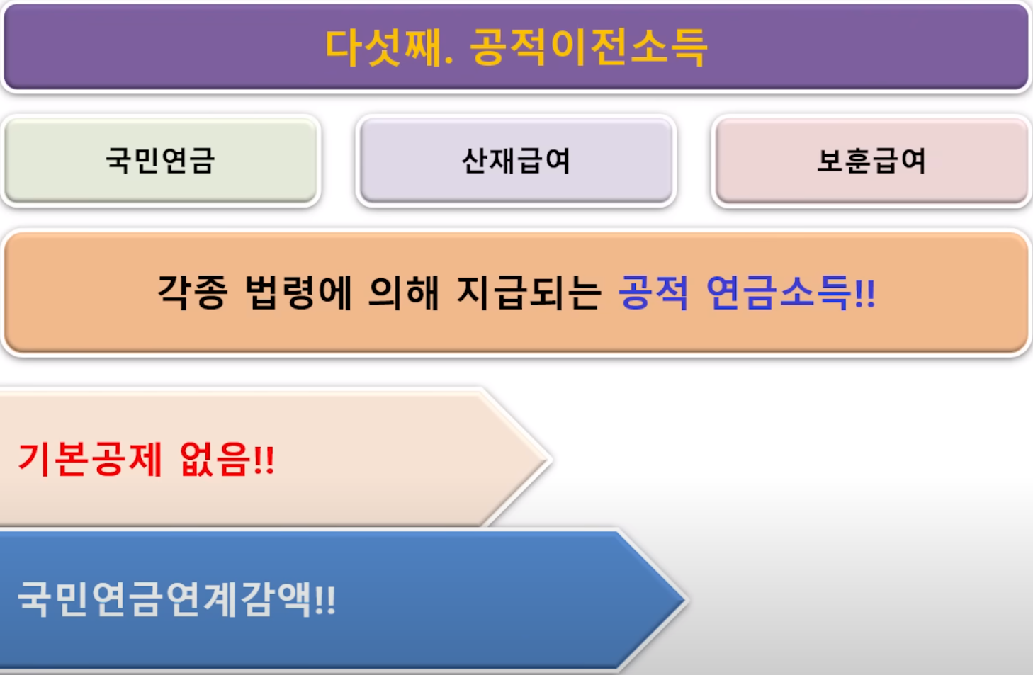 공적이전소득은 개인연금소득과 마찬가지로 기본공제가 없고 국민연금의 경우 연계감액까지 적용될 수 있으므로 기초연금에 가장 불리하다고 할 수 있습니다.