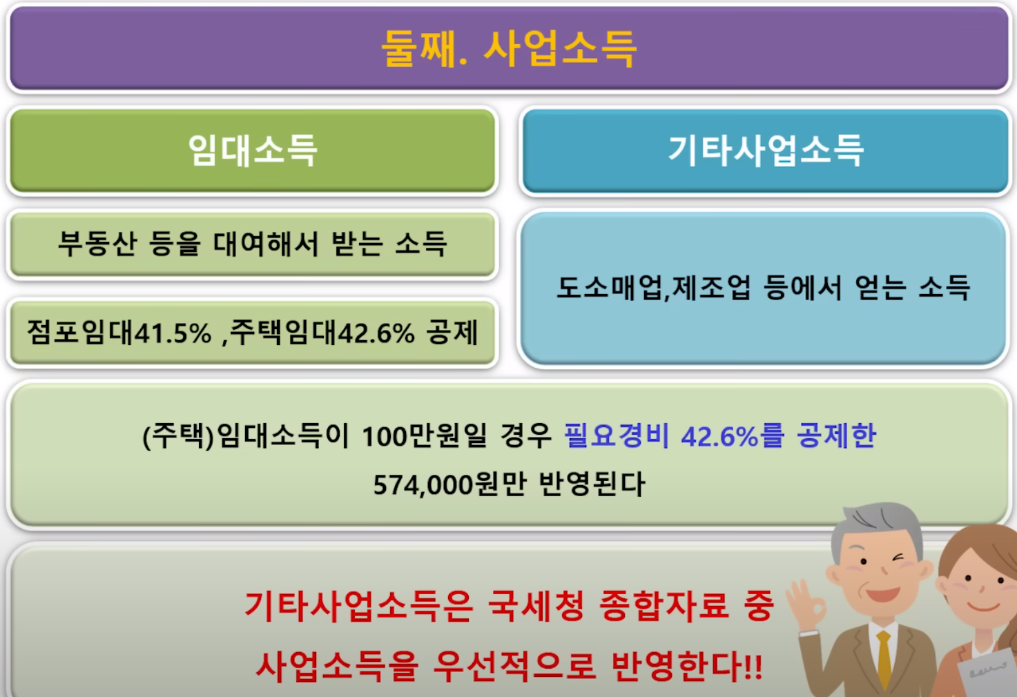 둘째 사업소득입니다. 여기서 사업소득은 크게 임대소득과 기타사업소득으로 나눌 수 있는데요.