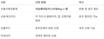 - 신청 방법: 온라인 (카드 충전) 또는 오프라인 (선불카드 등)