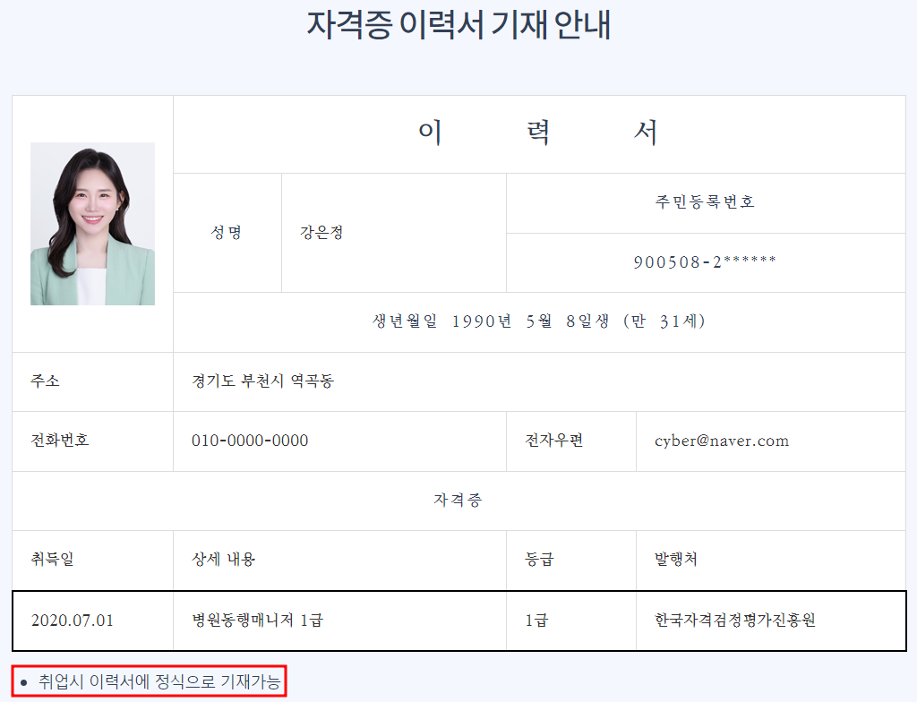 앞서 말씀드렸다시피, 현재 병원동행매니저의 채용 조건에서 자격증이 꼭 필수조건은 아닙니다. 그래서 꼭 필요하다 하신 분들은 자격증을 발급받아 보시면 되는데요. 일부 자격증 발급 비용이 발생한다는 점은 참고해 주셔야겠습니다.