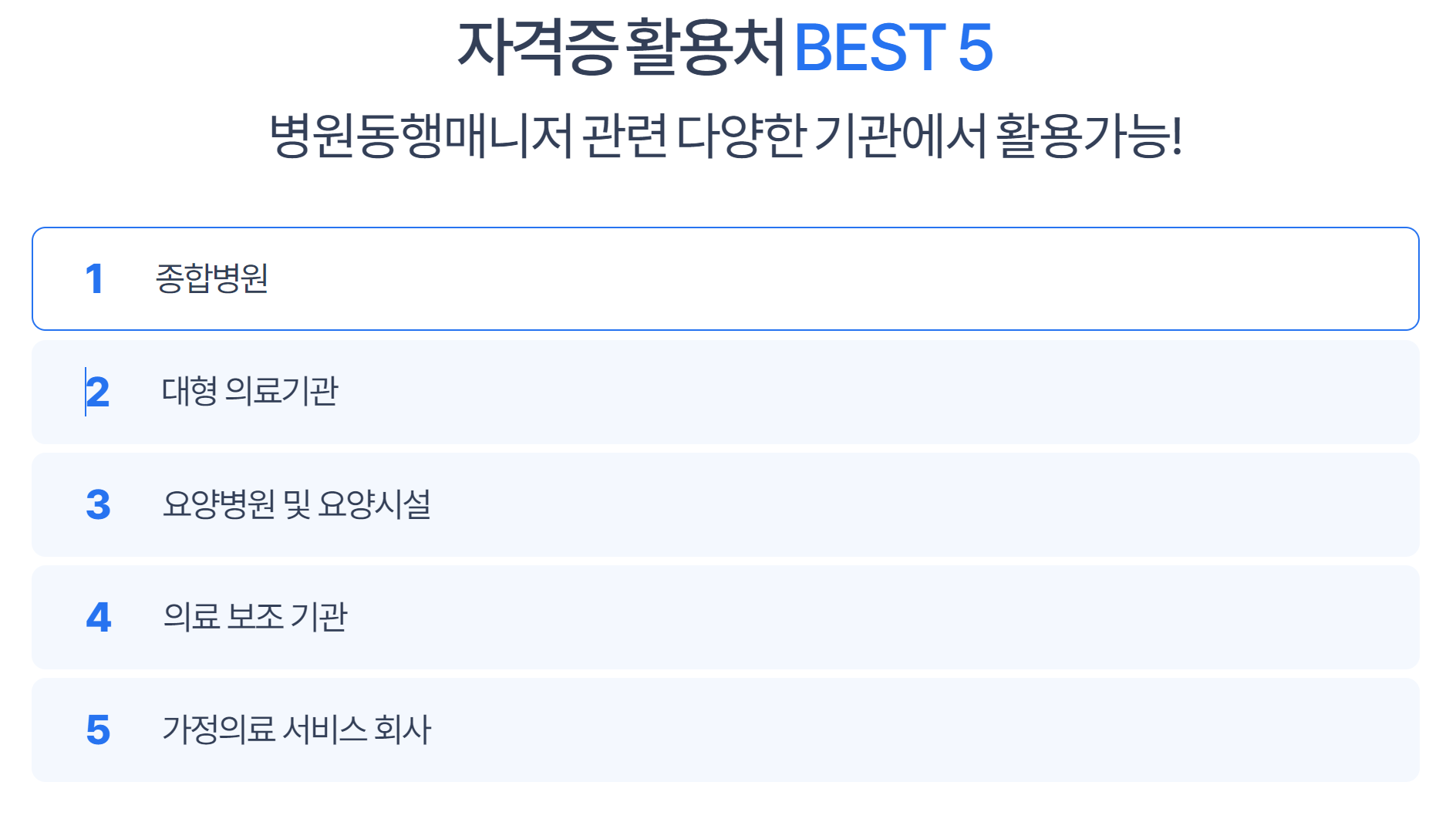 병원동행매니저 자격증은 다양한 관련 기관에서 활용 가능합니다.