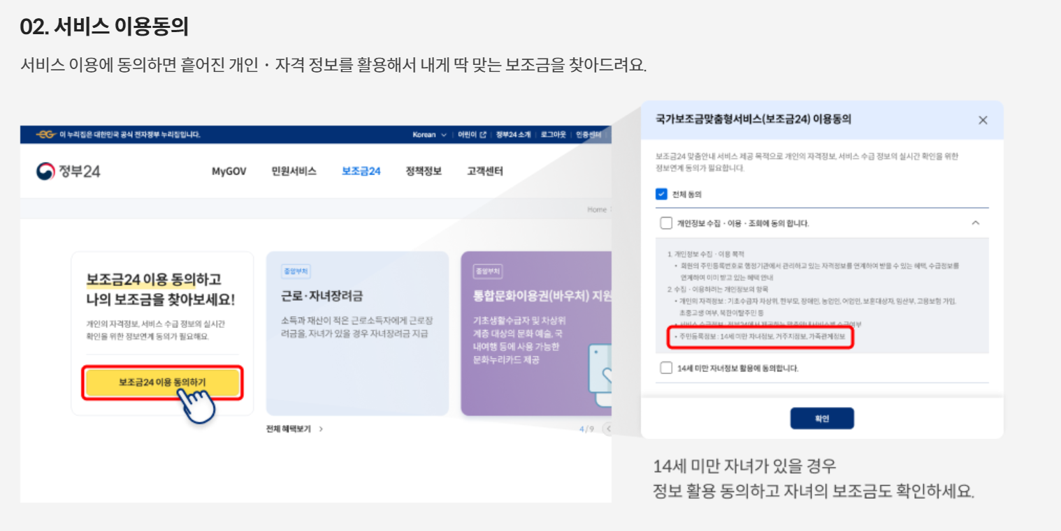 보조금24 안내 대상 서비스