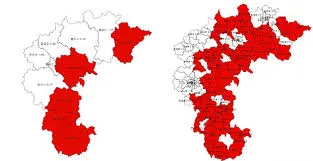 - 충북(6곳): 괴산군, 단양군, 보은군, 영동군, 옥천군, 제천시