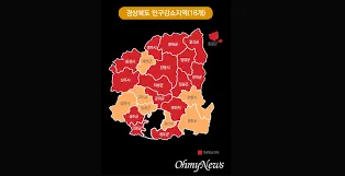 - 경남(11곳): 거창군, 고성군, 남해군, 밀양시, 산청군, 의령군, 창녕군, 하동군, 함안군, 함양군, 합천군