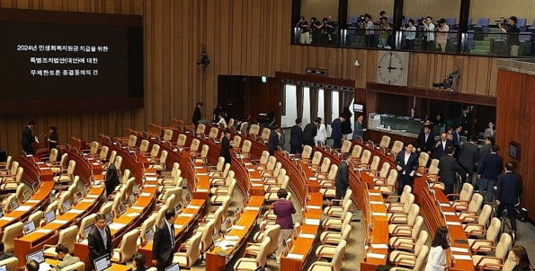 이 법안은 민주당의 1호 당론 법안으로, 8월 2일 국회에서 단독으로 처리되었습니다. 국민의힘은 이 법안을 '13조원 살포법'이라 칭하며 필리버스터로 저지하려 했으나, 제한된 24시간이 지나면서 야당 주도로 법안이 통과되었습니다.