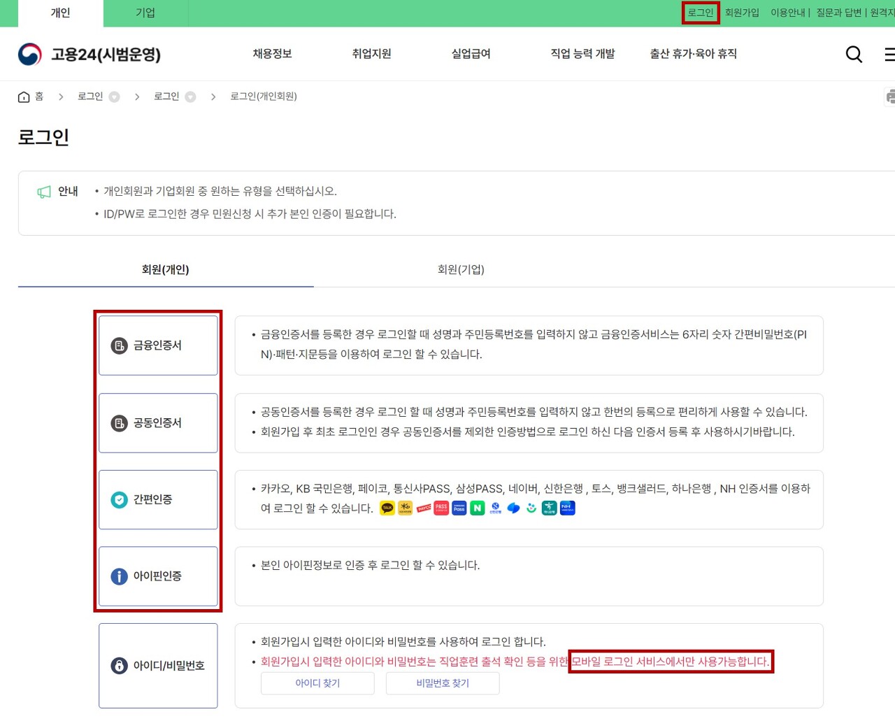 1. 고용24 홈페이지 로그인