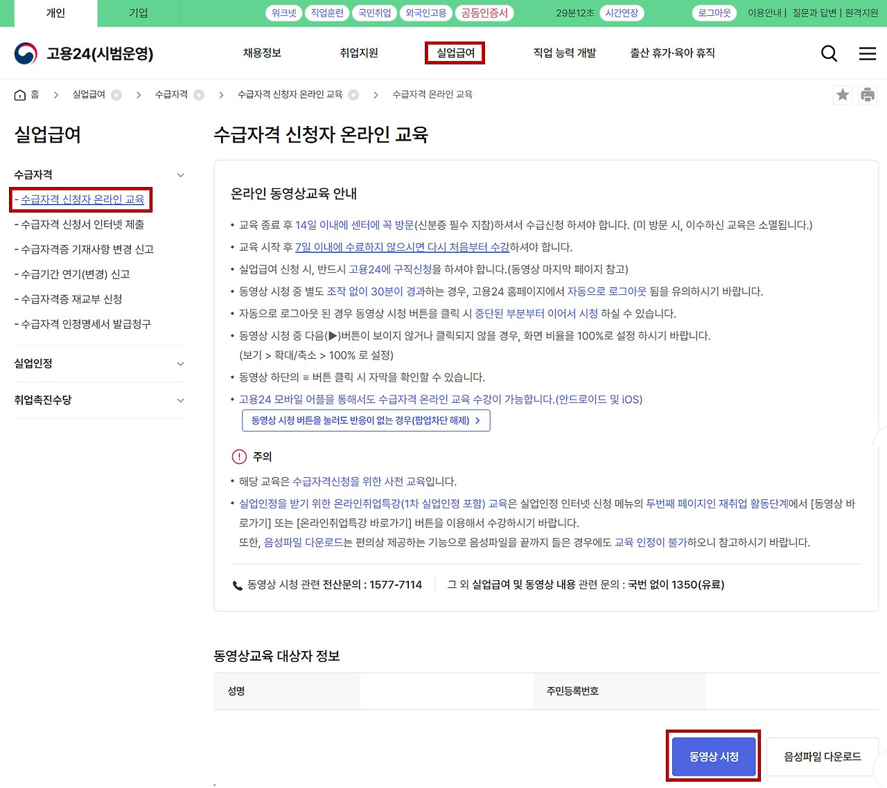실업급여 수급신청을 위해 우선 온라인 동영상 교육을 받아야 합니다.