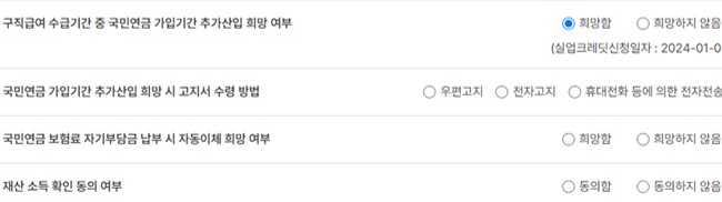 5. 실업크레딧(국민연금 가입기간 추가산입) 신청 희망 여부 체크