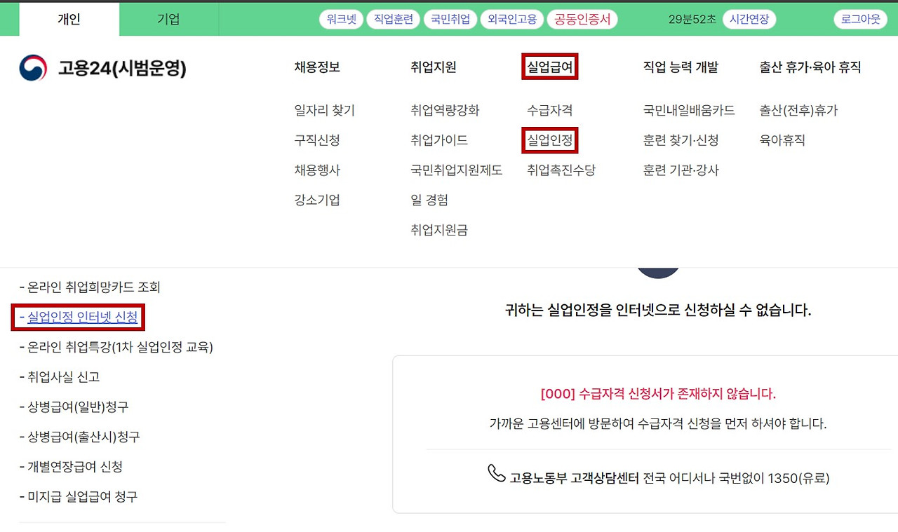 4. 실업인정 인터넷 신청하기