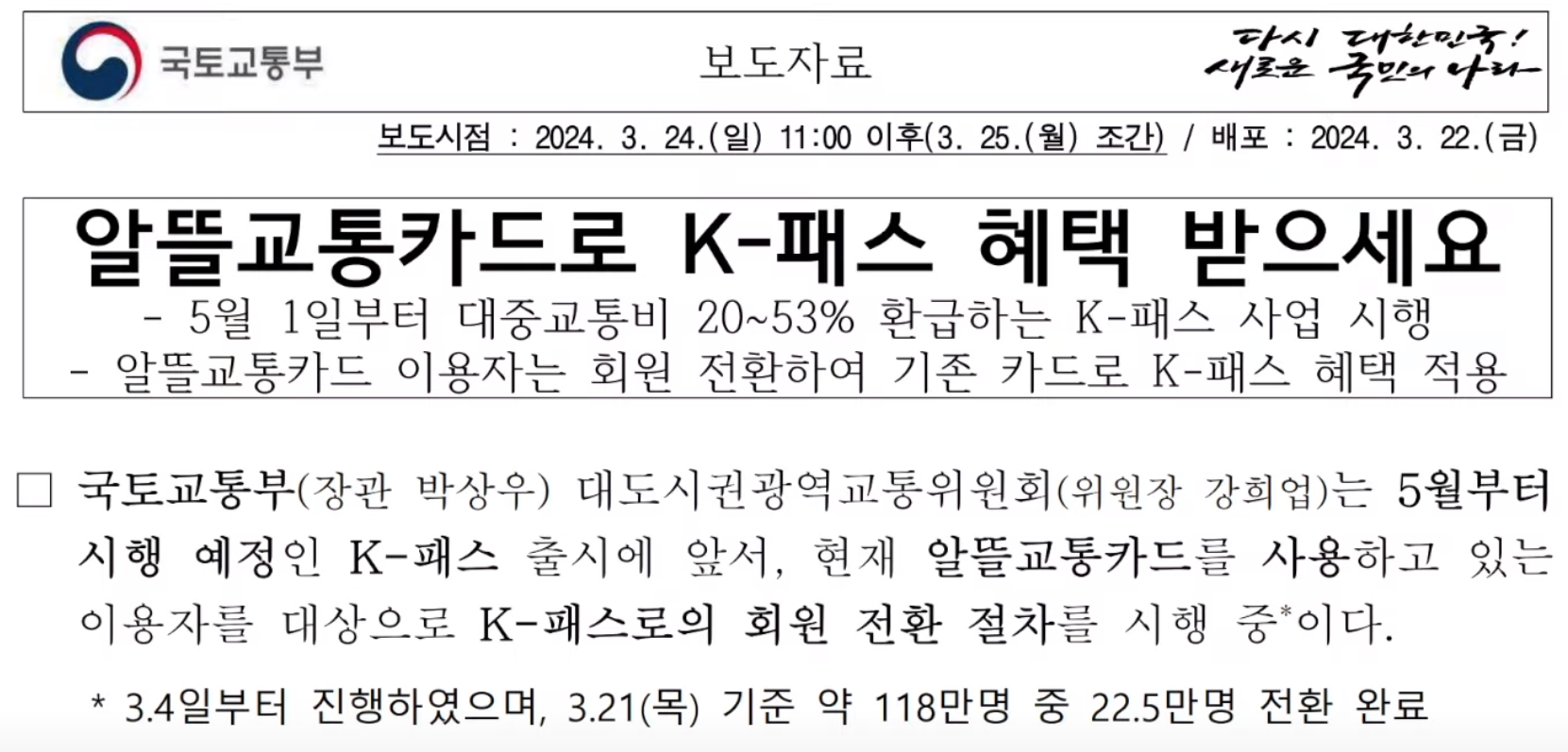 K패스는 기존의 알뜰교통카드의 문제점을 개선하고 혜택은 더 강화했는데요.